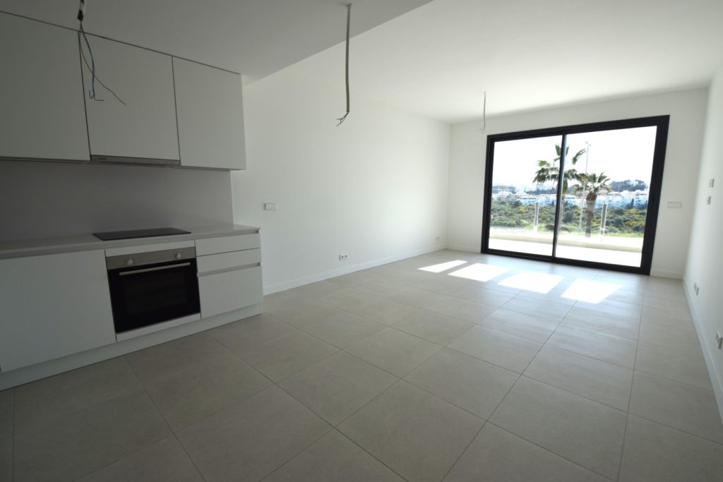 Situated in Calanova Golf, one of the premier locations in La Cala de Mijas, we are pleased to offer this brand new 3 bedroom 2 bath luxury apartment featuring high quality finishes and characterized by cutting-edge architecture.  Its innovative design harmoniously incorporates a spacious terrace, allowing the homes to connect with the surrounding landscape and the abundant natural light of Mijas Costa.  Located just a few minutes drive from La Cala de Mijas, one of the best towns along the Costa del Sol, this excellent location enables a perfect balance between the serenity of a stunning natural setting and the amenities and entertainment options available in nearby Malaga, Fuengirola, and Marbella.  As you enter the apartment you are welcomed by an open plan kitchen/dining/lounge area that has direct access to the southwest facing terrace, with open views of the surrounding countryside and to the sea.  The master bedroom also has access to this terrace and the two guest bedrooms are situated on the opposite side of the apartment looking out over the rest of the community.  A beautiful deck level communal swimming pool and similar children’s pool are in the centre of the community, adjacent to the spacious and well equipped indoor gym and sauna.  Also included is an allocated covered parking space and a private storage room.